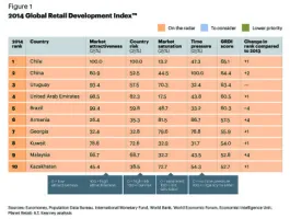 Even as the Chinese economy slows and conditions become more difficult for foreign retailers, China is still the world’s second top destination for emerging market retail expansion.
